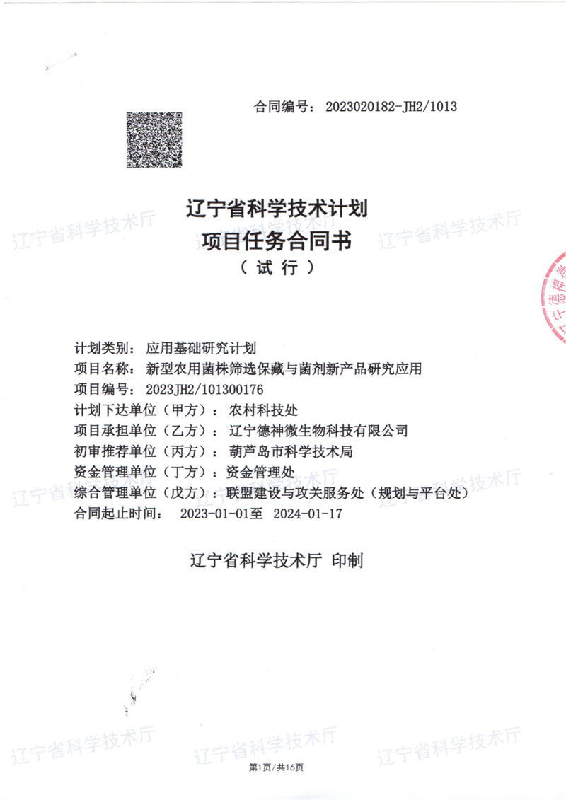 遼寧省科技計劃:新型農(nóng)用菌株篩選保藏與菌劑新產(chǎn)品研發(fā)應用項