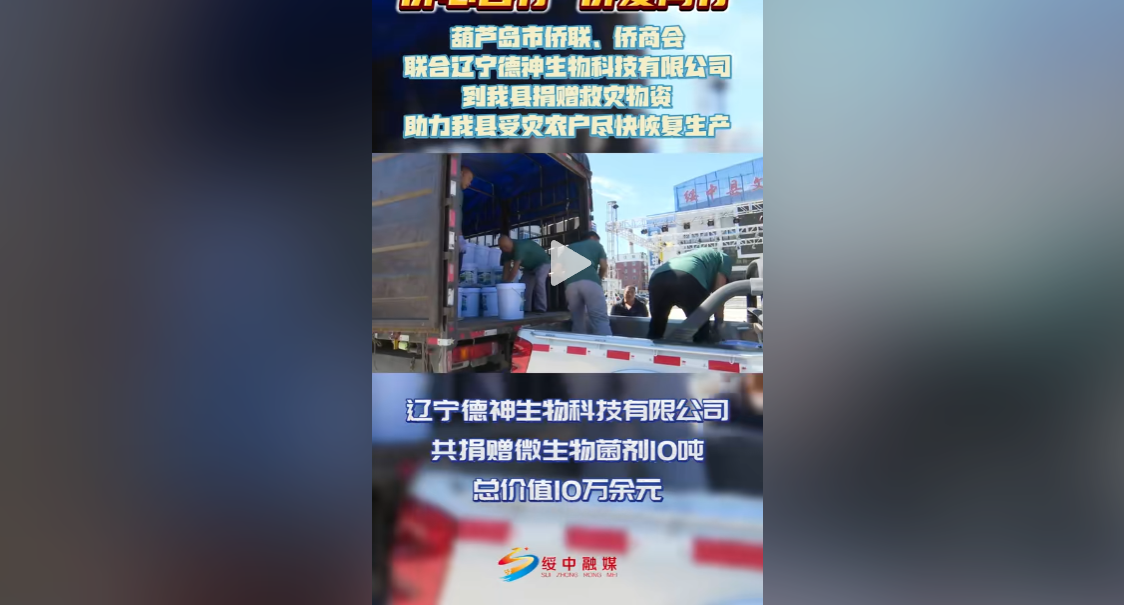 葫蘆島市僑聯、僑商會聯合遼寧德神生物科技有限公司到我縣捐贈救災物資,助力我縣受災農戶盡快恢復生產。